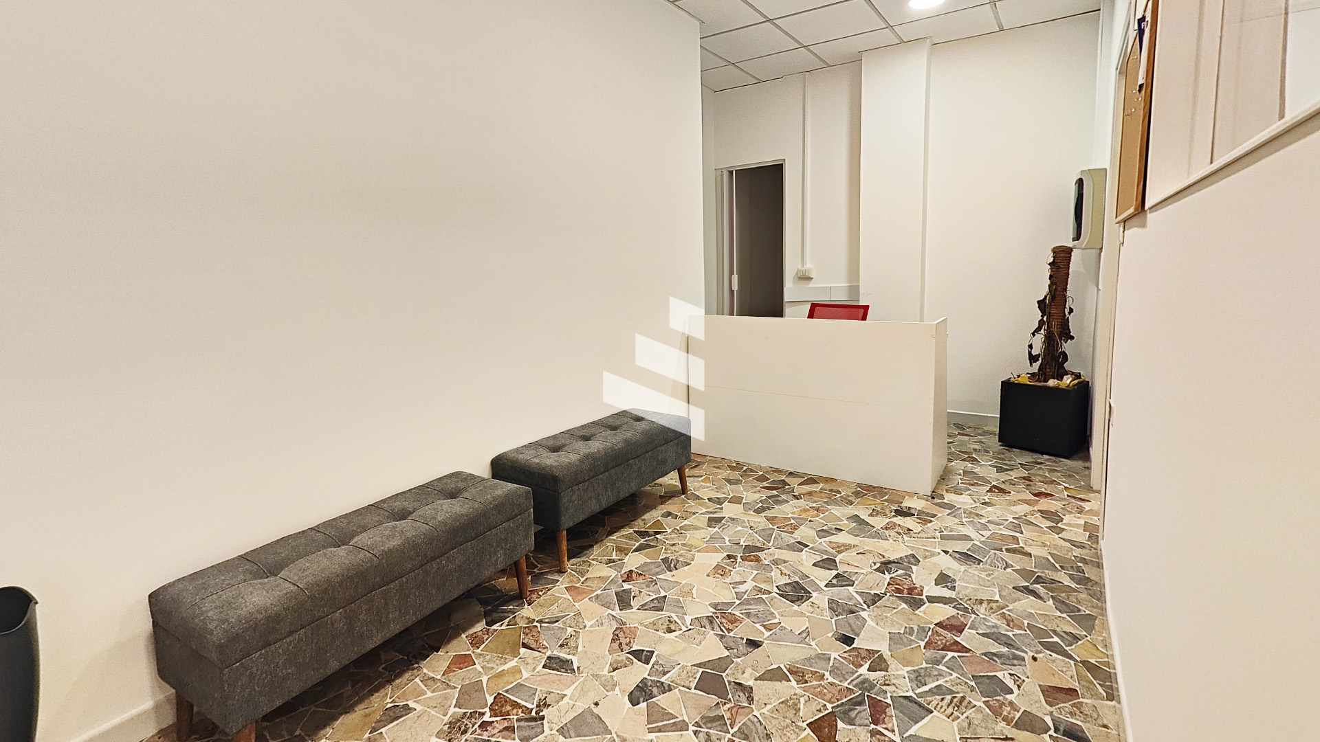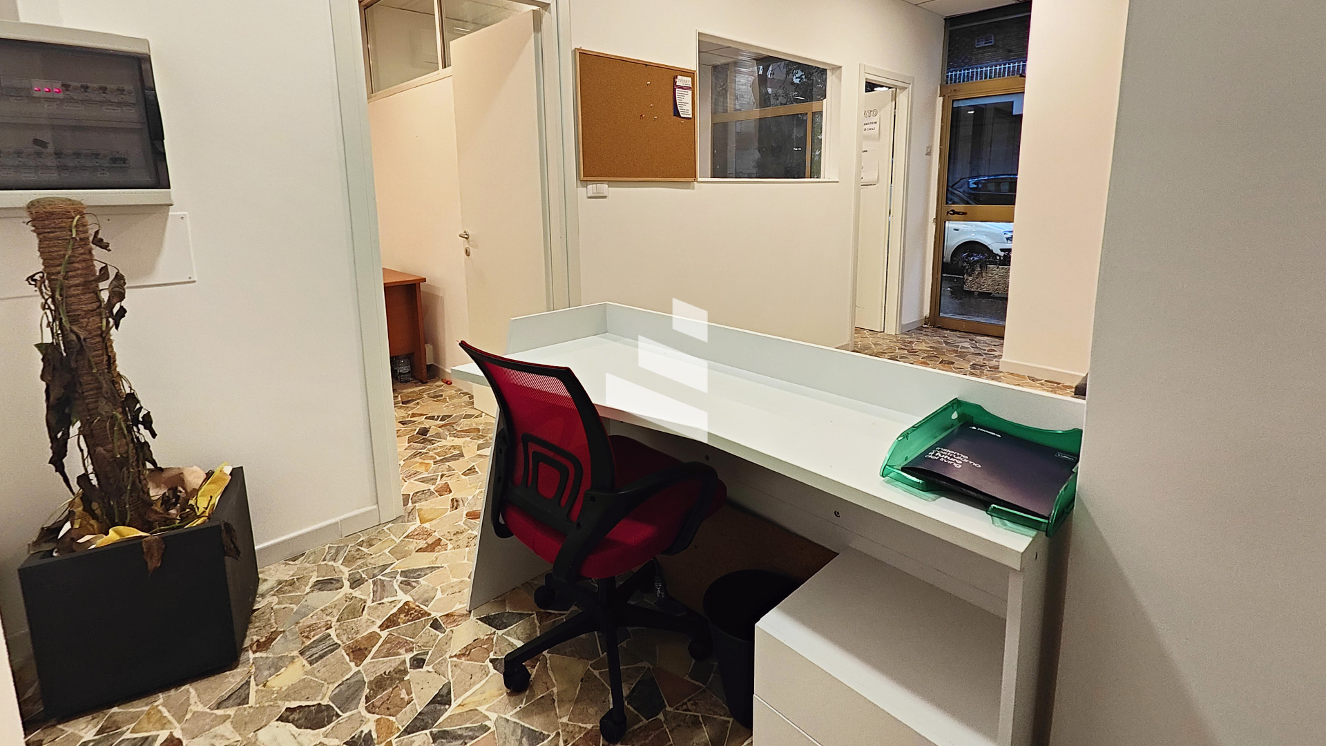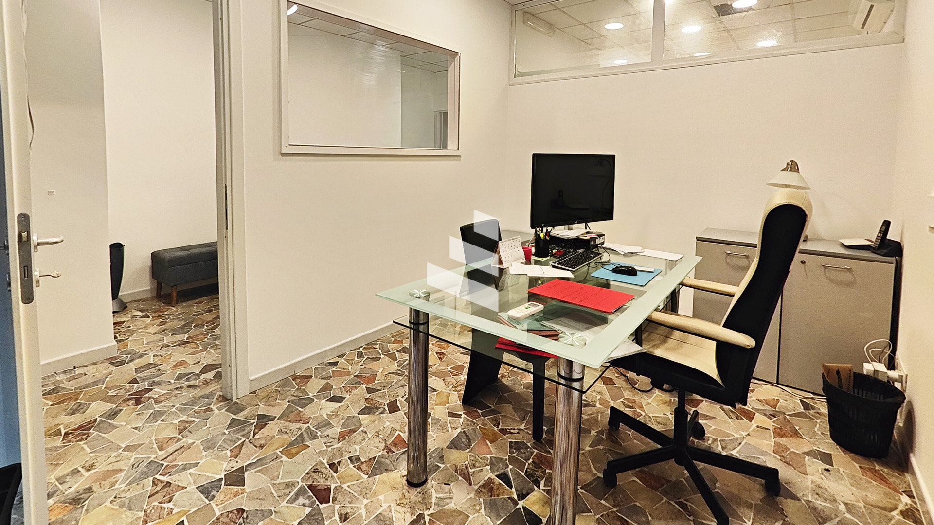 L’immobile, parzialmente arredato, si distingue per l’ottima distribuzione degli spazi interni ed è composto da reception d’ingresso, due sale operative, due comodi depositi/archivi, antibagno e bagno finestrato.