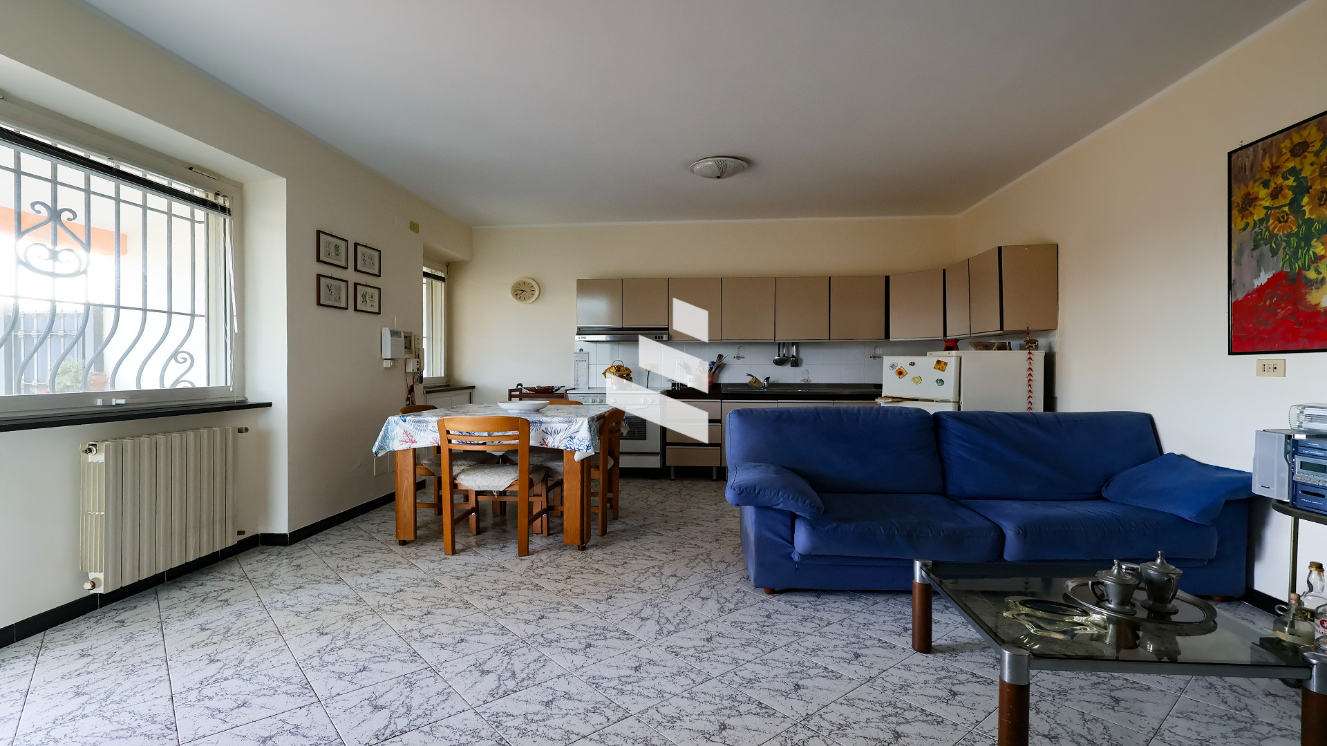 L’immobile si apre su un luminoso e spazioso salone con camino, perfetto per creare un’atmosfera calda e accogliente, con cucina a vista che rende l’ambiente moderno e conviviale.