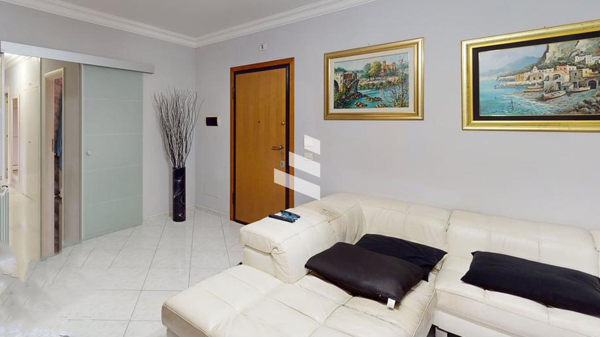 Esso è composto da un salone con accesso al balcone, cucina abitabile, un disimpegno che conduce alla zona notte dove troviamo una camere da letto matrimoniale e una cameretta ed con doppi servizi entrambi finestrati. Completa la proprietà un box auto singolo, un posto auto scoperto e una cantina.