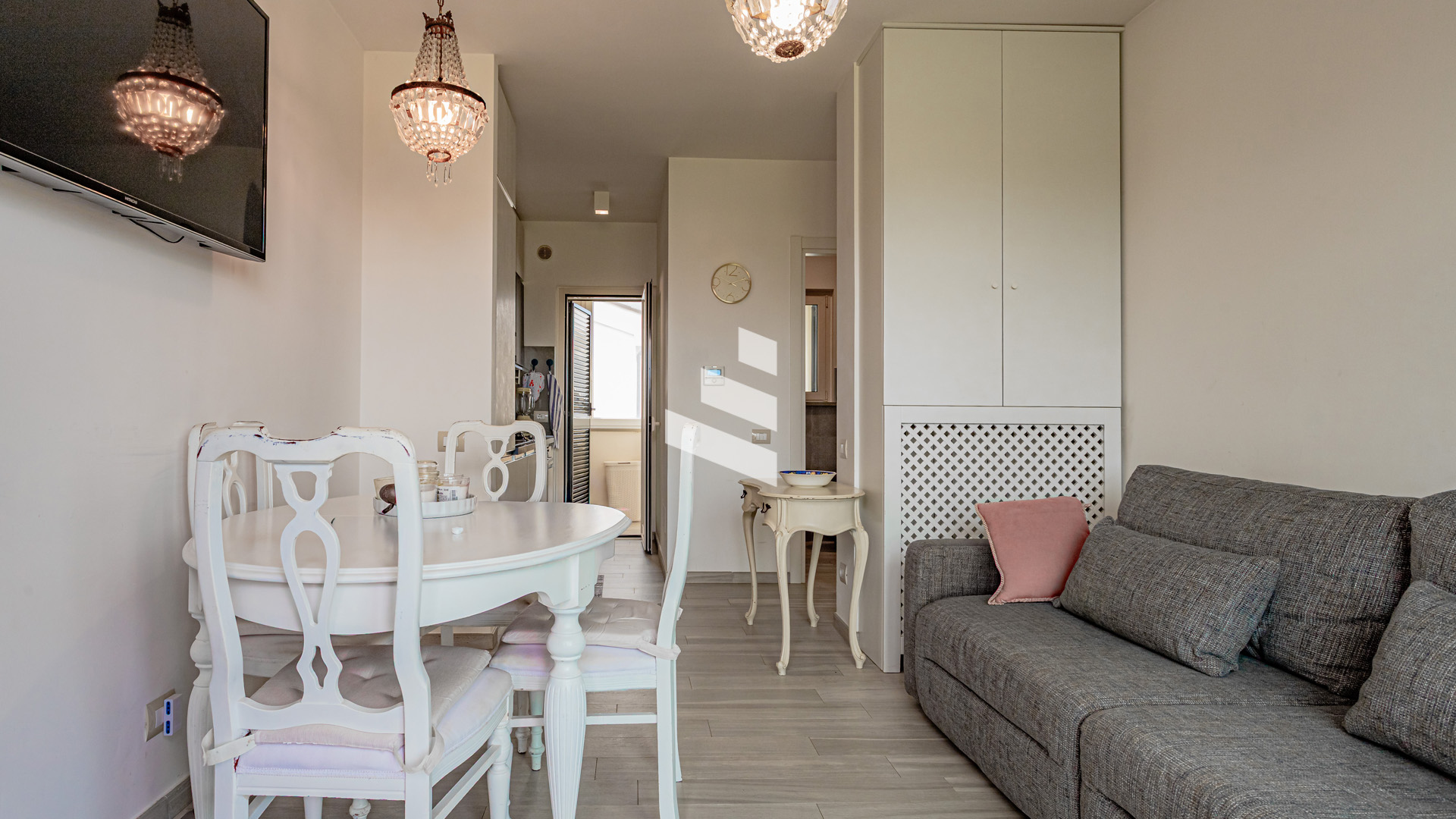 - Piano principale: ampio e luminoso soggiorno con angolo cottura, camera da letto, bagno finestrato, zona lavanderia e due balconi che donano grande luminosità e affacci ariosi.