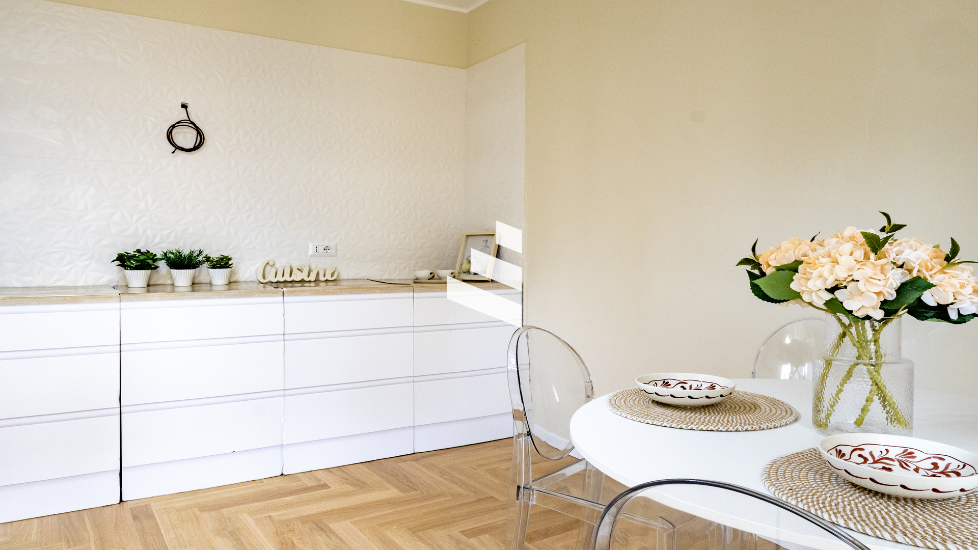 Parquet in ogni ambiente, infissi in PVC con doppi vetri taglio termico, porta blindata, predisposizione aria condizionata caldo/freddo.